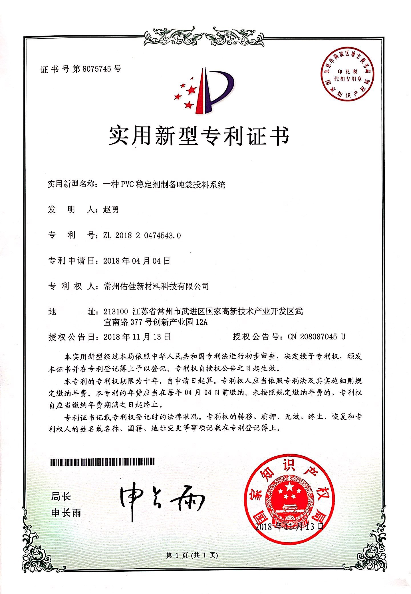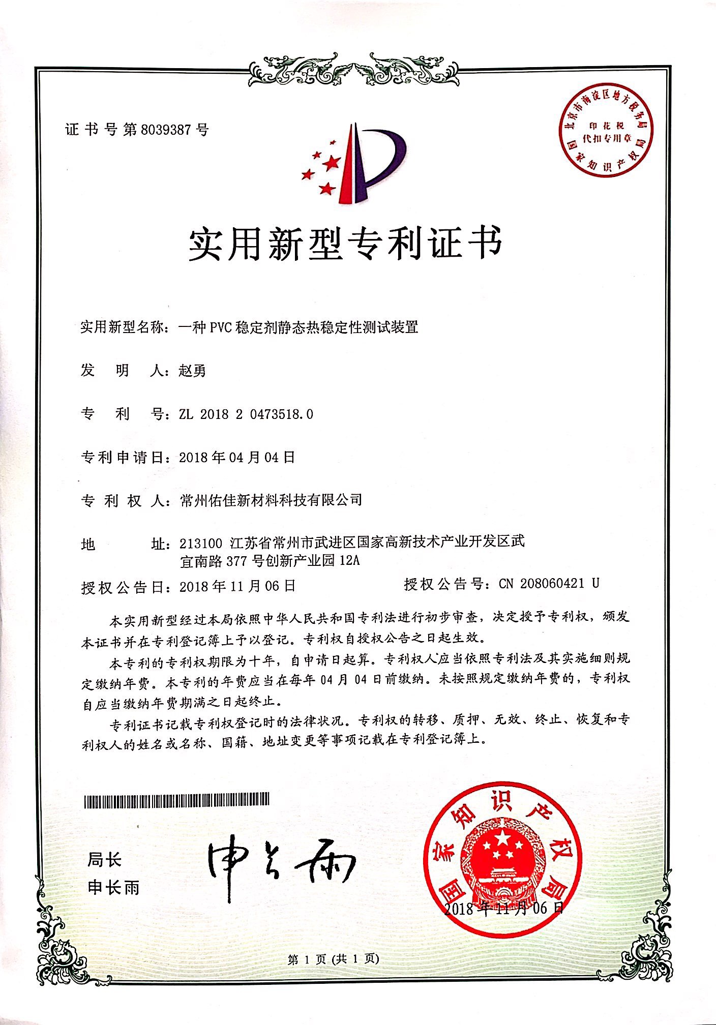 专利证书